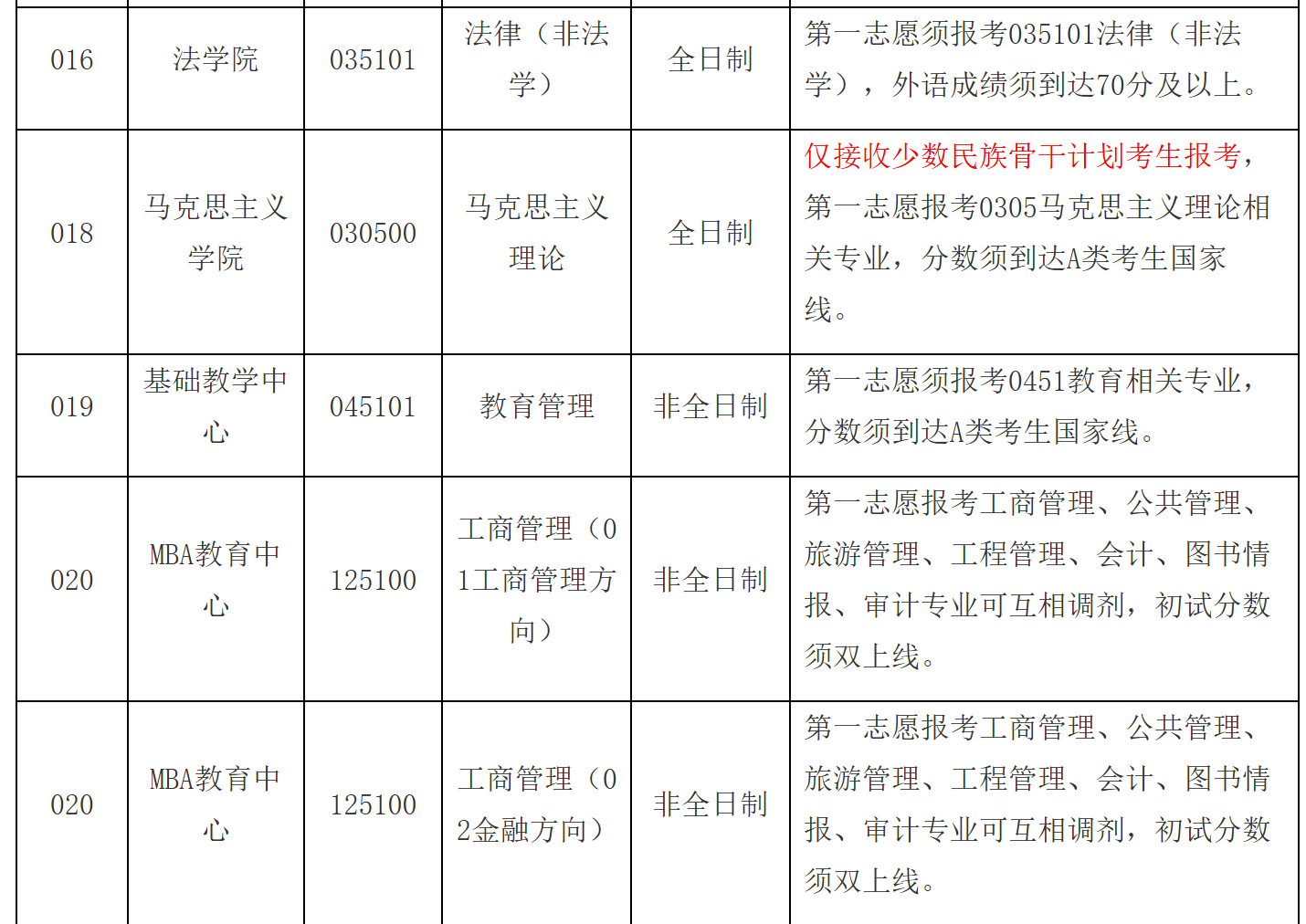 注:以上专业同时接收少数民族骨干计划调剂,各科成绩须达到全国初试成绩基本要求(A类考生)。具体录取名额需根据全校总体情况进行统筹调整。