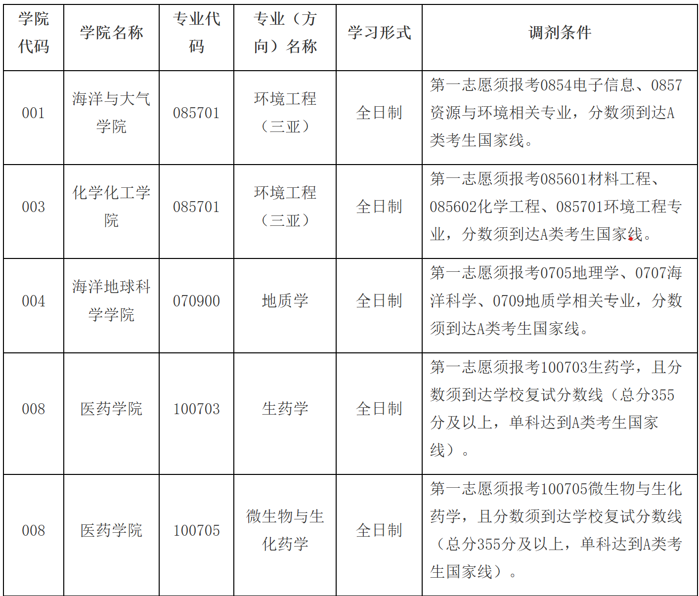 我校将在部分生源不足专业招收调剂考生(详见下表,除所列专业之外,其他专业均不接收调剂),具体调剂工作安排详见各单位相关通知: