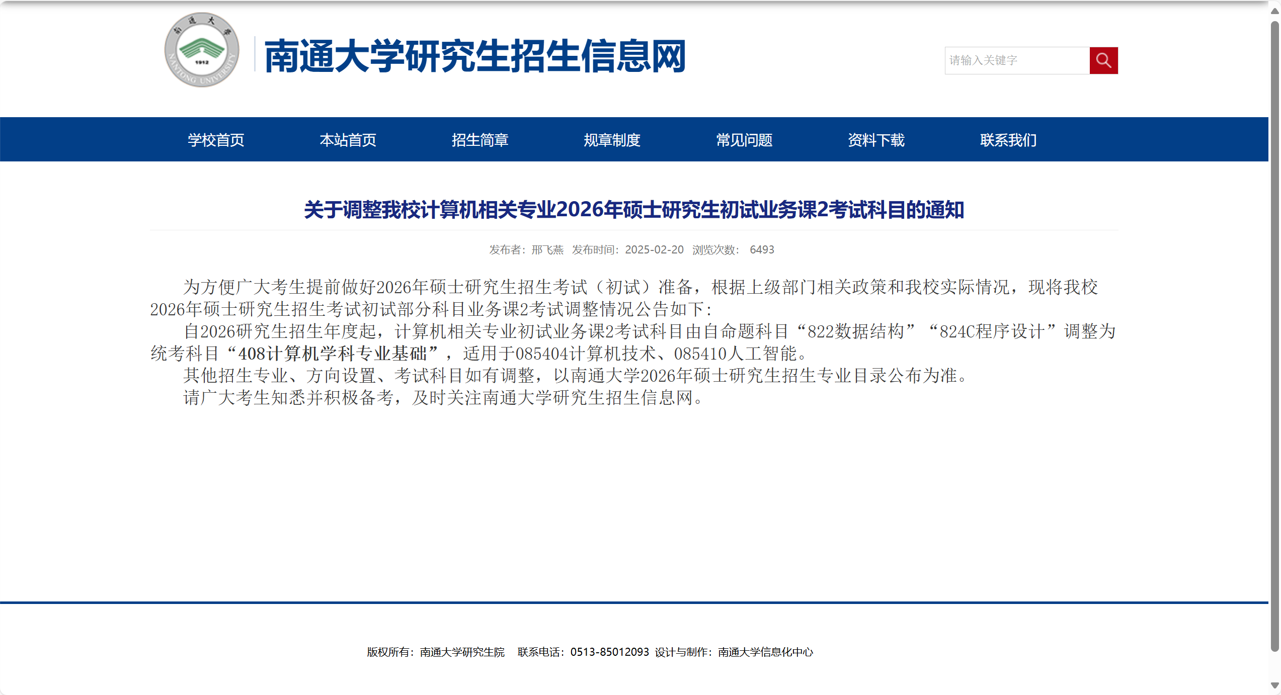 请广大考生知悉并积极备考,及时关注南通大学研究生招生信息网。