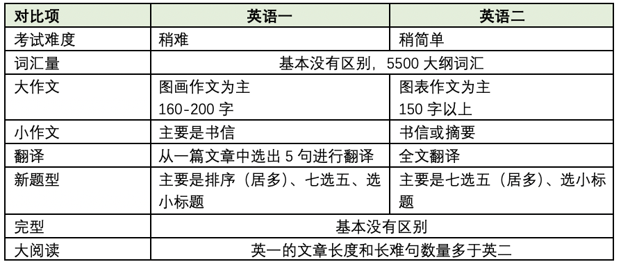英语一的难度大于英语二(英一平均分48分,英语二平均分55分)