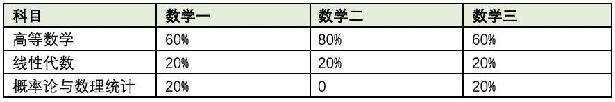 一般来说,理工类考数一或数二,经济和管理类考数三。具体的占比如下: