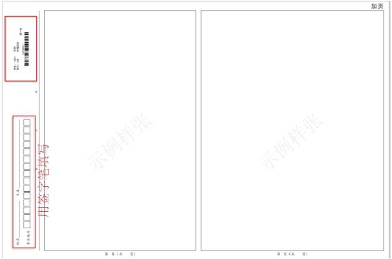 3. 如果使用了加页答题纸(超过4张),那么加页答题纸不用粘贴条形码,只需填写姓名、专业、考生编号,然后正常答题即可。