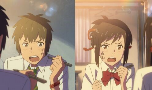 神木隆之介:我是擅自想象着上白石如果为三叶配音的话应该会有多么可爱然后来饰演自己的角色的。上白石看过我出演的电视剧《还有第11人!》(朝日电视台系),教了我如何演绎兴奋时候的状态。