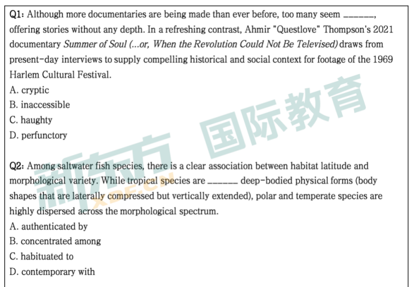 词汇题:考到了cryptic、haughty、perfunctory、habituated to、authenticated by、misgiving、composure、retrospective、counterfactual等词。以下三道题,感兴趣的同学不妨一试~