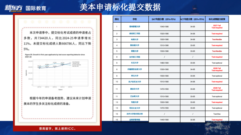 SAT考试在近年日益火热的重要原因是美本高校标化政策的恢复,可以看到八大藤校中除哥伦比亚大学外均已宣布恢复为“必须提交标化成绩”,并且理工类院校也全部对标化成绩提出了要求。Common App申请数据显示:截止到今年2月,递交申请时提交标化成绩的考生数量已大幅超过申请时未提交的学生,同比上升11%,这标志着标化成绩在申请时的作用愈发明显。