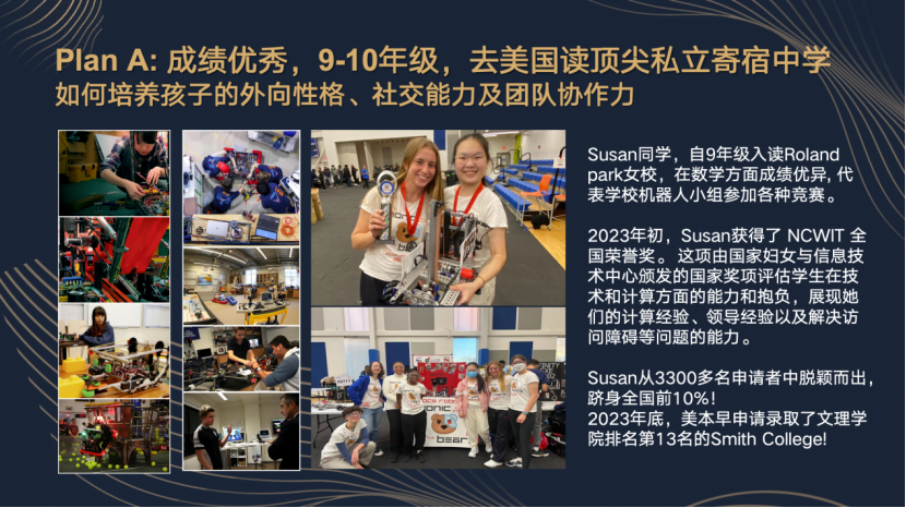 1.对于成绩优异的孩子,可在 9-10 年级入读美国优质私立寄宿中学,在圆桌教学法等独特模式下,培养批判性思维与全球视野,并积累顶级人脉资源;