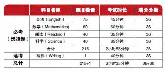 ACT 全称为美国大学入学考试(American College Test),始于1959 年,由美国ACT 教育集团主办。ACT 成绩被美国所有四年制大学和学院接受,是衡量学生能否接受大学教育的可靠指标,也是许多机构颁发奖学金和决定课程安排的重要依据。