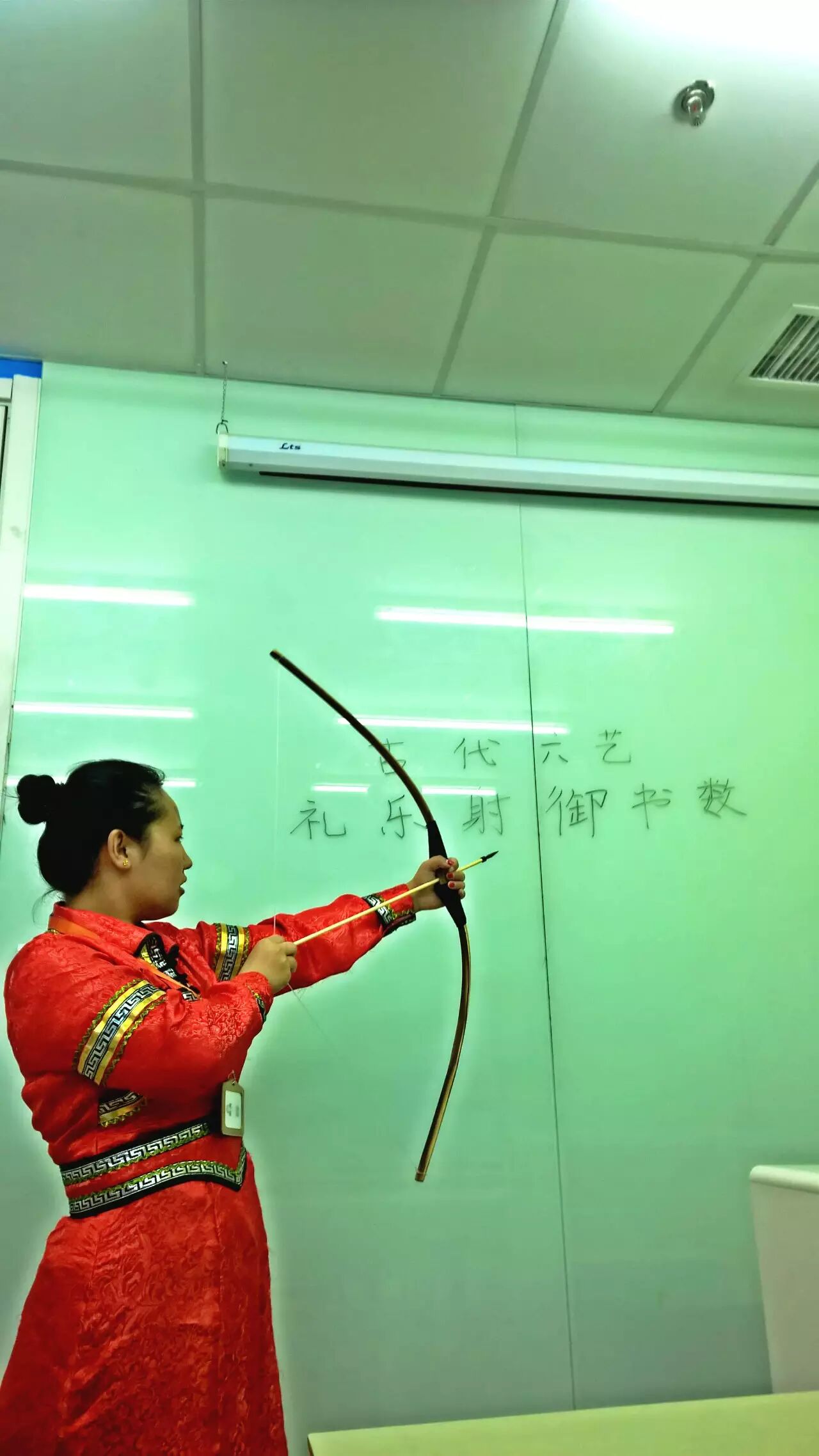 拉弓射箭是蒙古族人的基本技能。“射”是古代六艺之一,用弓箭演示语文常识,倒是头一遭!