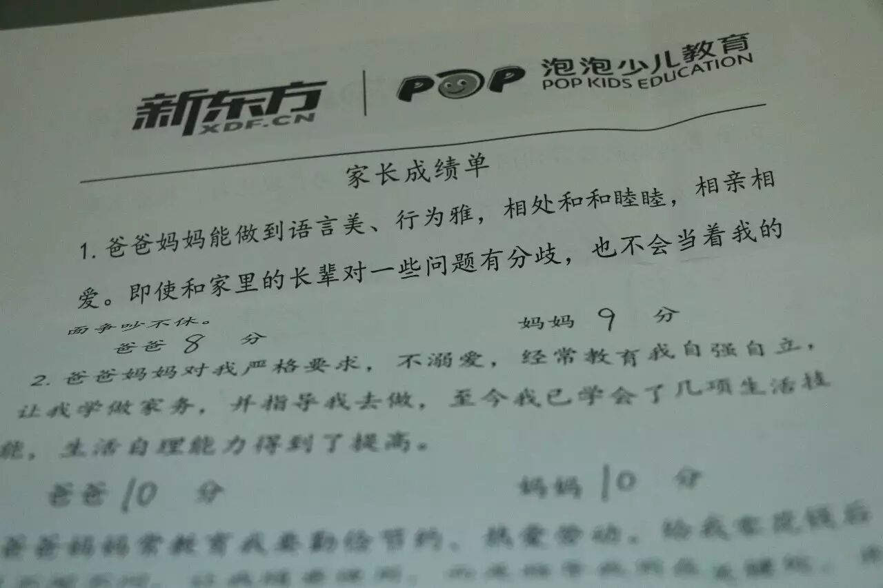 今天是班级结课,还有一份特别的家长成绩单需要填写哦!
