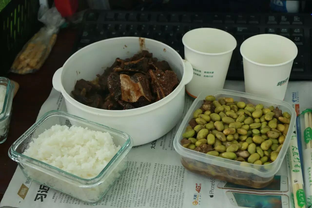 坐在电脑桌前,加热后的饭菜咸香满溢,是内蒙古家乡的味道~