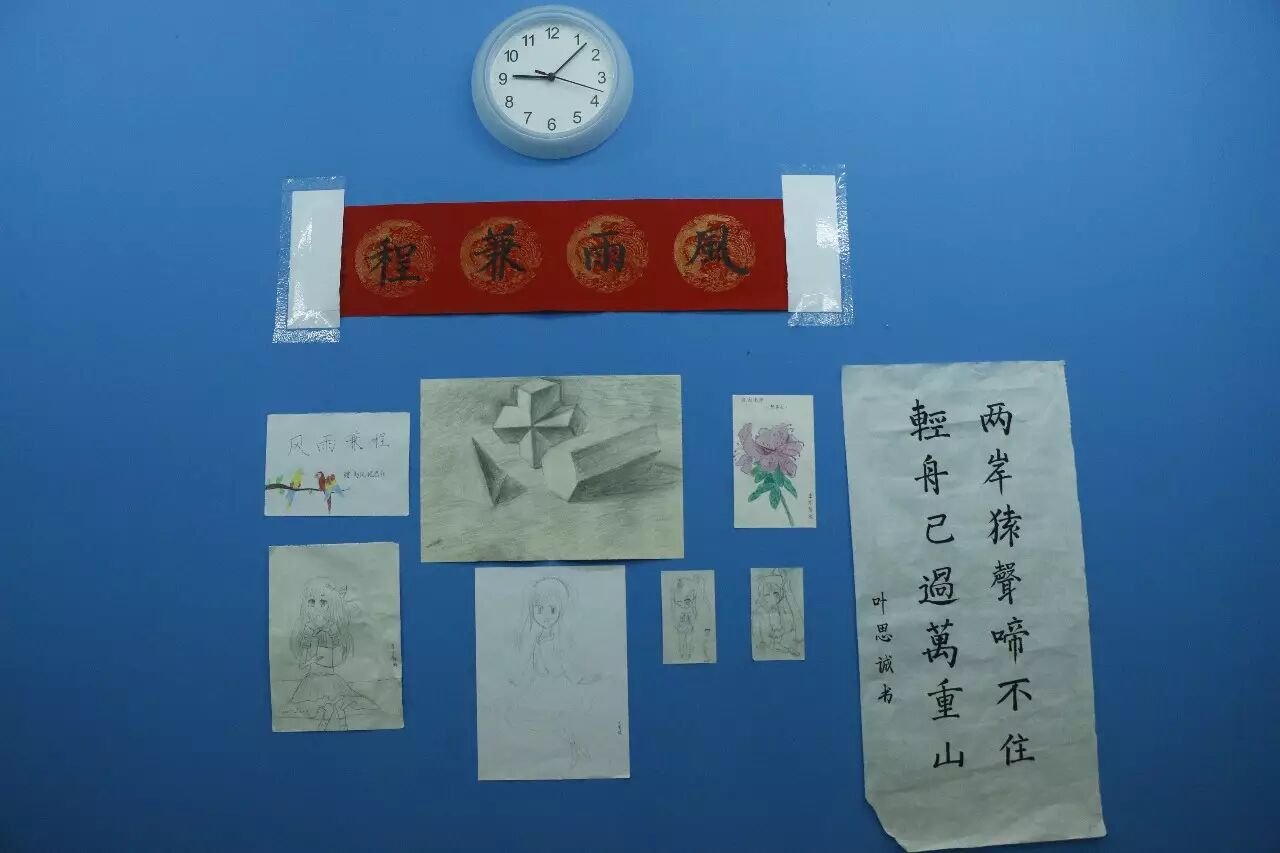 这里有孩子们登报的作品展览,有挂在墙上的大字,也有放在软笔书法……不同粗细,都对应着孩子们的期待。