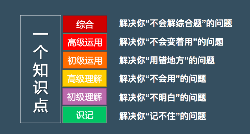 我们以高一数学的必考点解一元二次等式为例,这个知识点是三星级,教学目标是要解决孩子“不会解”的问题,老师在课堂上会引导孩子总结出一套步骤:1,化标准型;2,解对应方程的根;3,根据口诀写出不等式的解集。步骤总结好之后,通过课堂训练进行巩固,这样,孩子们就可以很轻松地掌握这一知识点了。