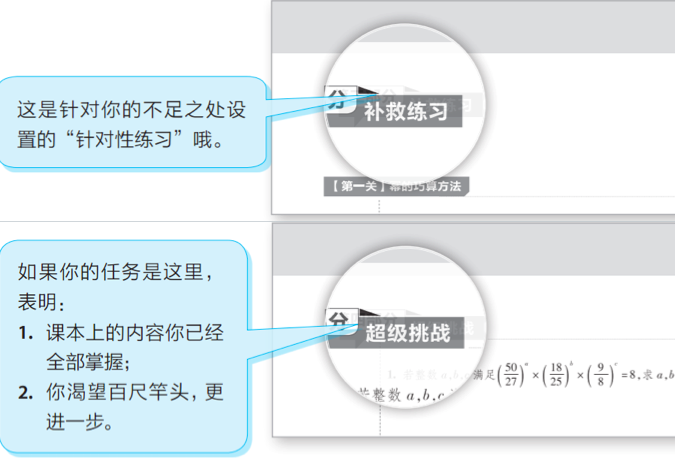 作为VPS体系的重要一环,补救练习-别册真正实现了孩子作业的差异化,根据自己课堂上错的情况,有针对性的做属于自己的作业,如果课堂训练中全部正确,那么别册中专门为这些小学霸准备了超级挑战,里面的题目难度略大,富有挑战性!