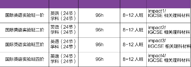 国际英语实验班包含以下阶段:国际英语实验班1阶;