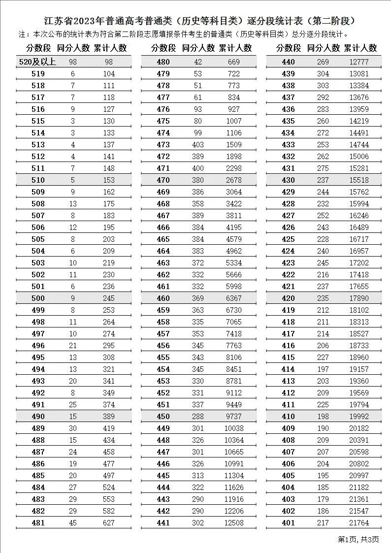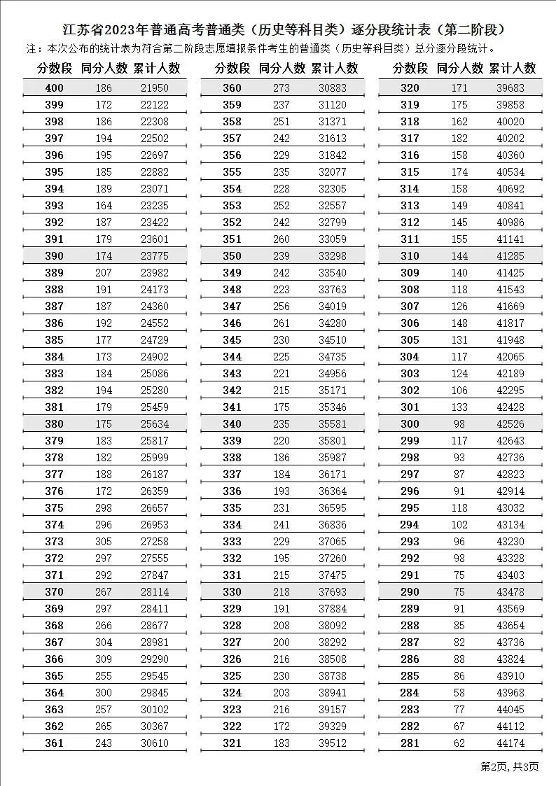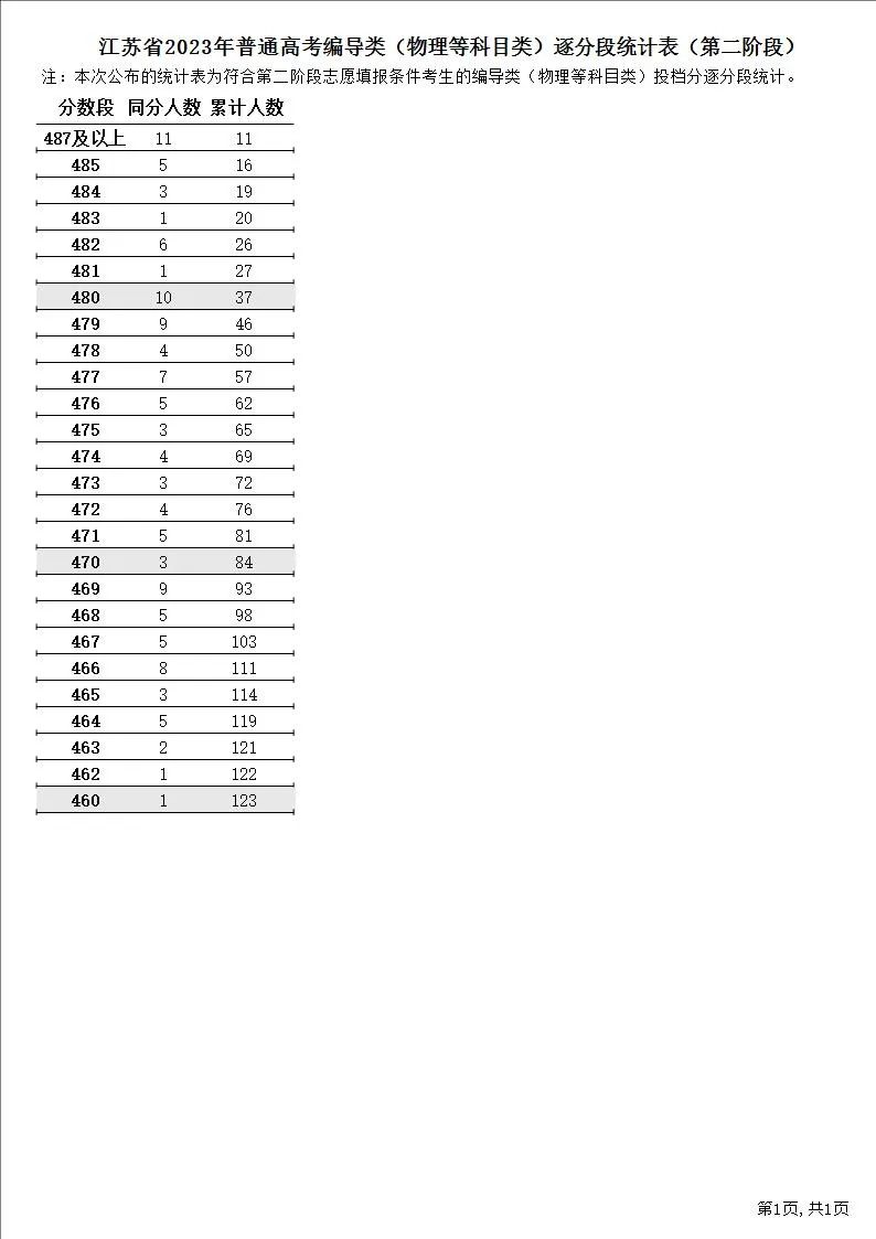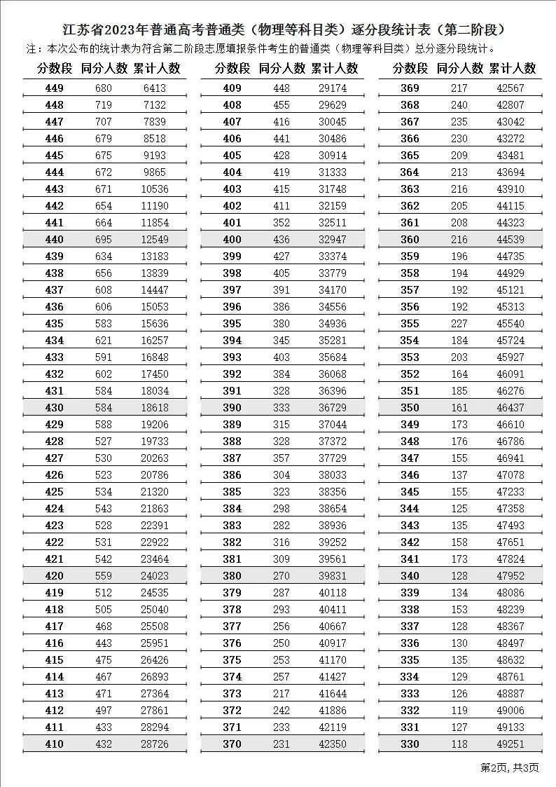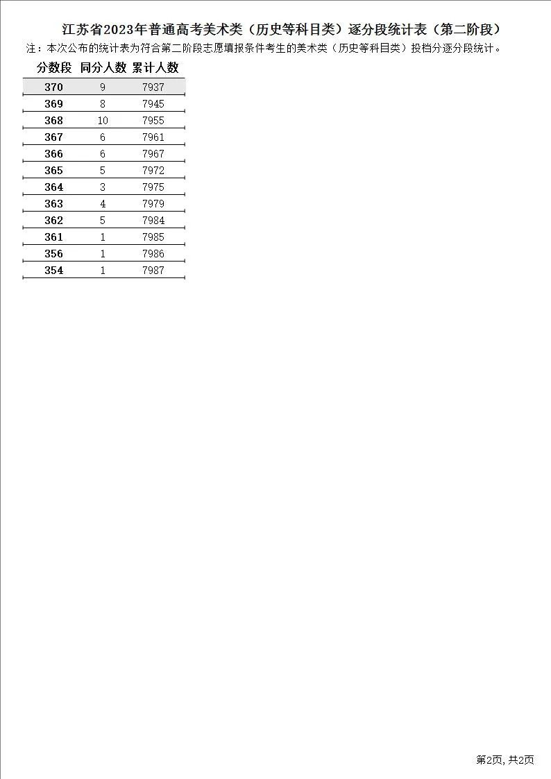 2023年江苏省普通高考逐分段统计表-第二阶段