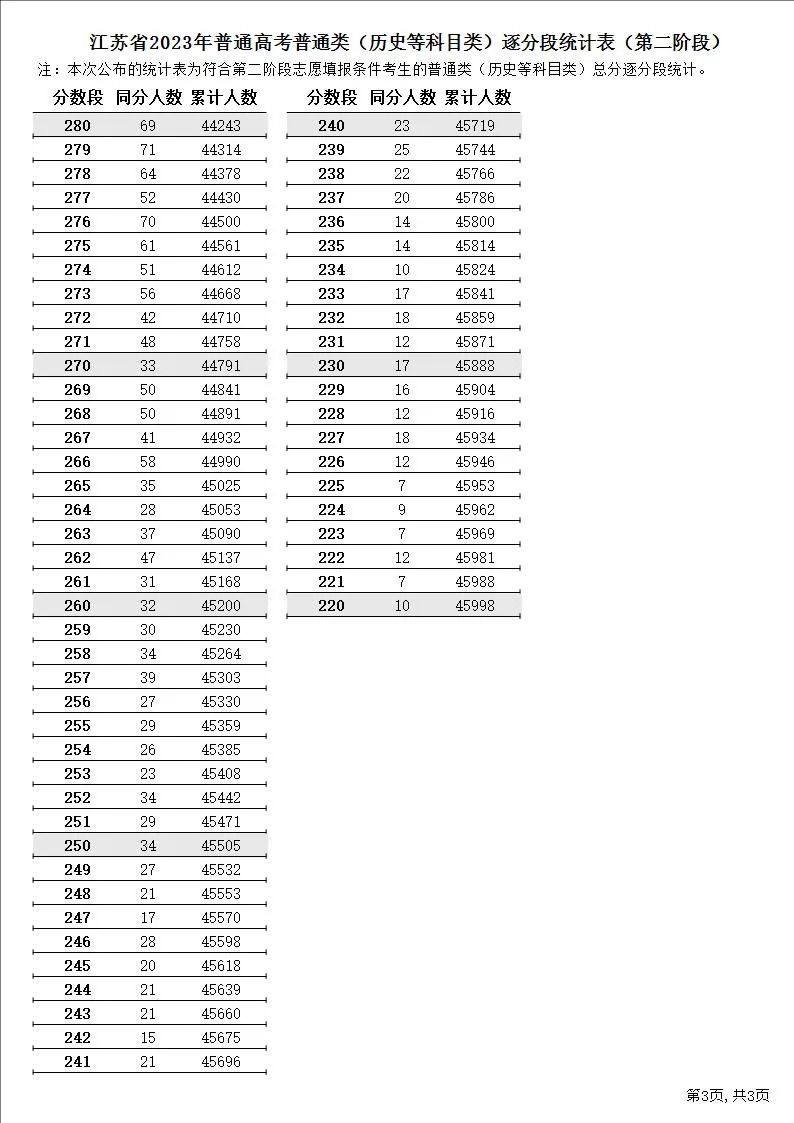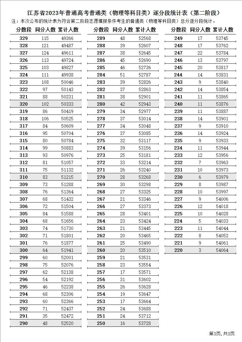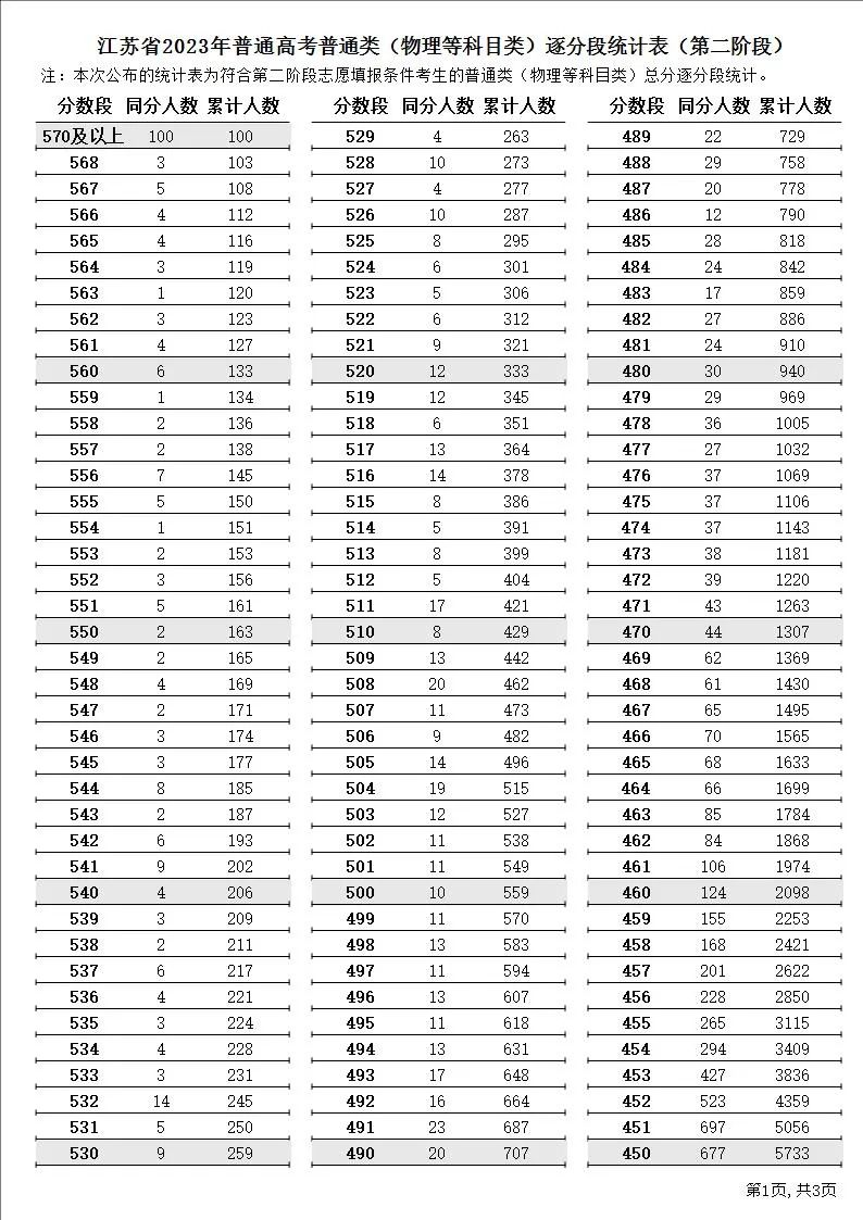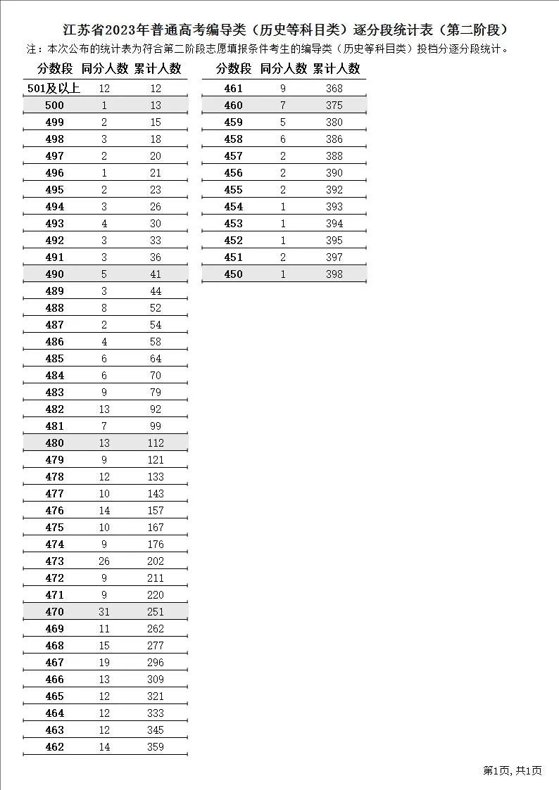 2023年江苏省普通高考逐分段统计表-第二阶段