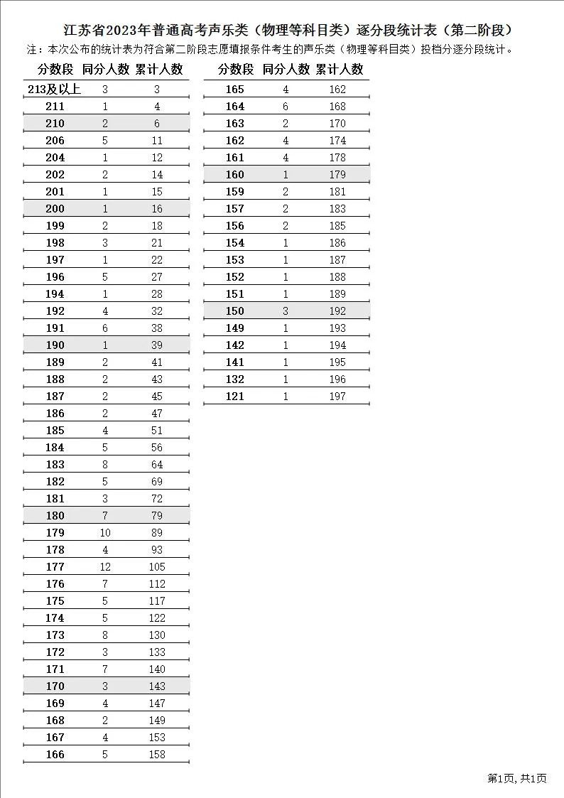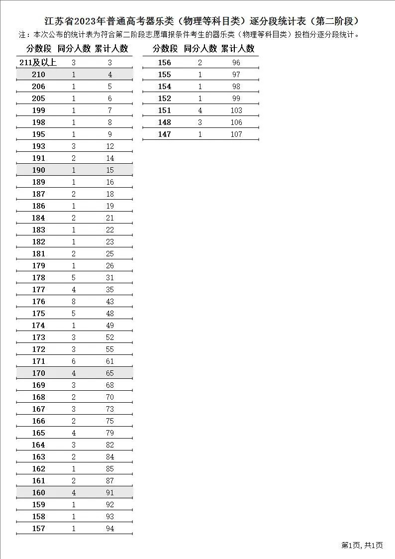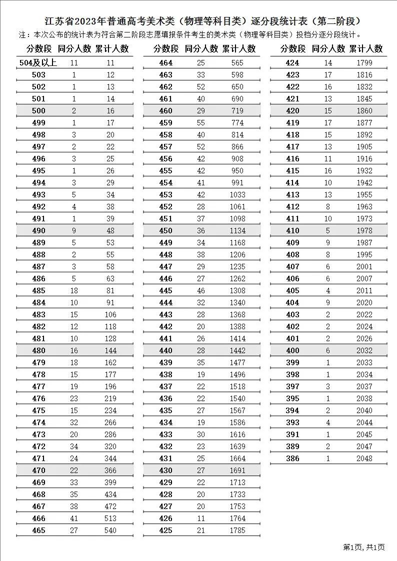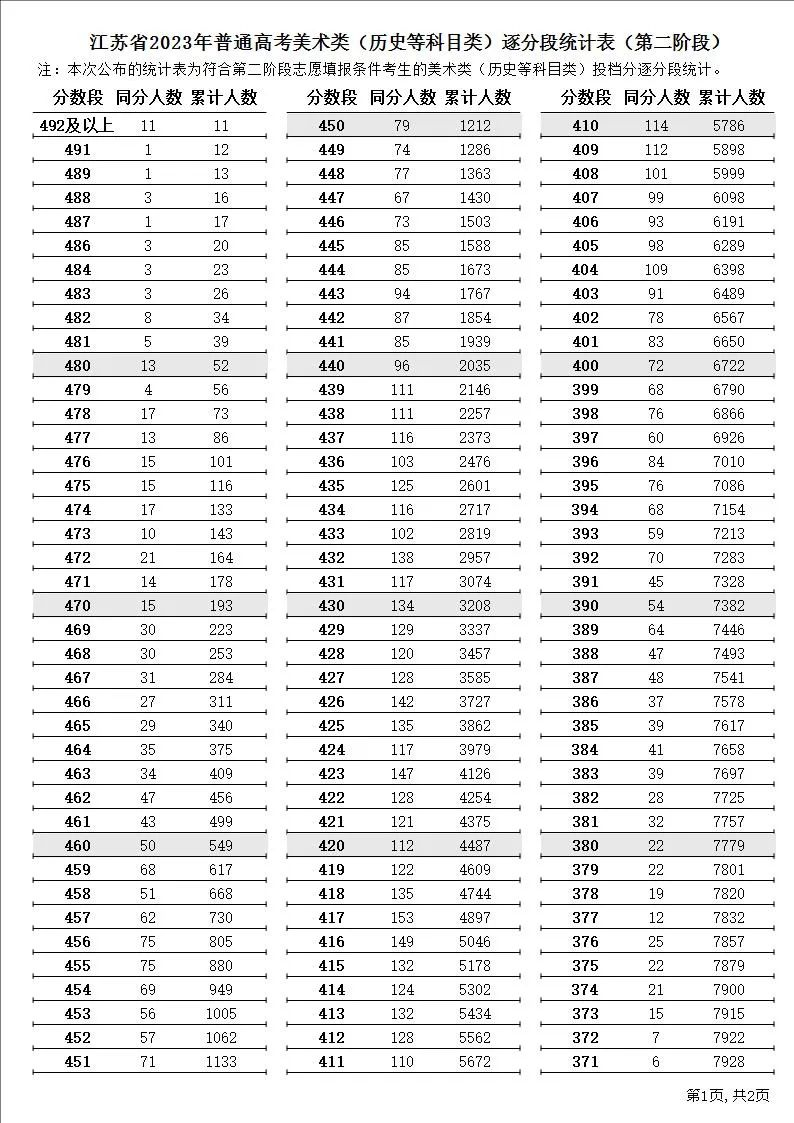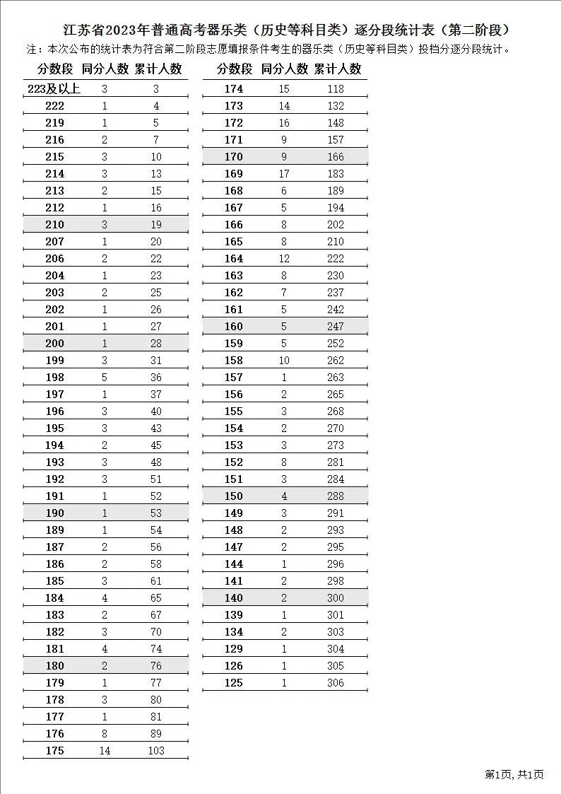 2023年江苏省普通高考逐分段统计表-第二阶段