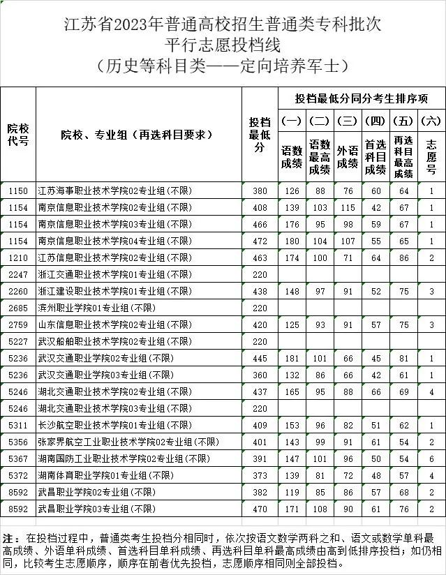 2023年江苏省苏州市普通类专科批次平行志愿投档线-定向培养军士
