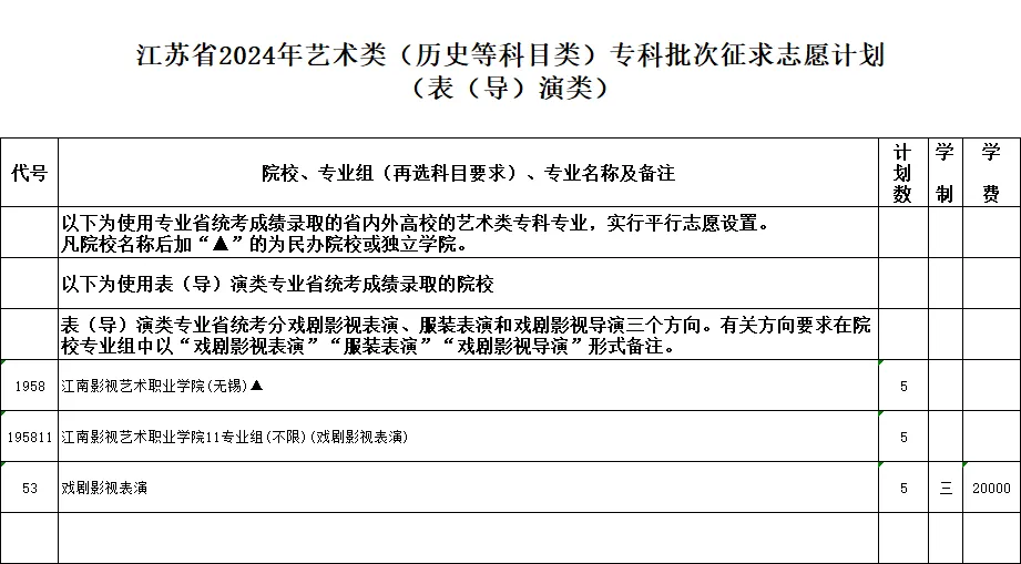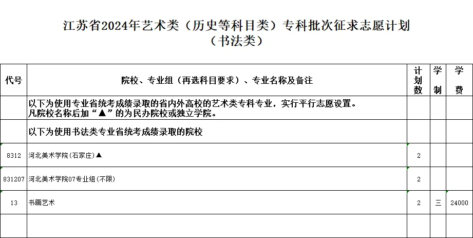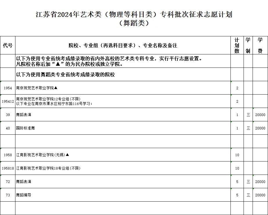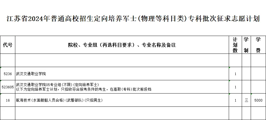 2024年江苏省苏州市普通高校招生体育类、艺术类及定向培养军士专科批次征求志愿计划