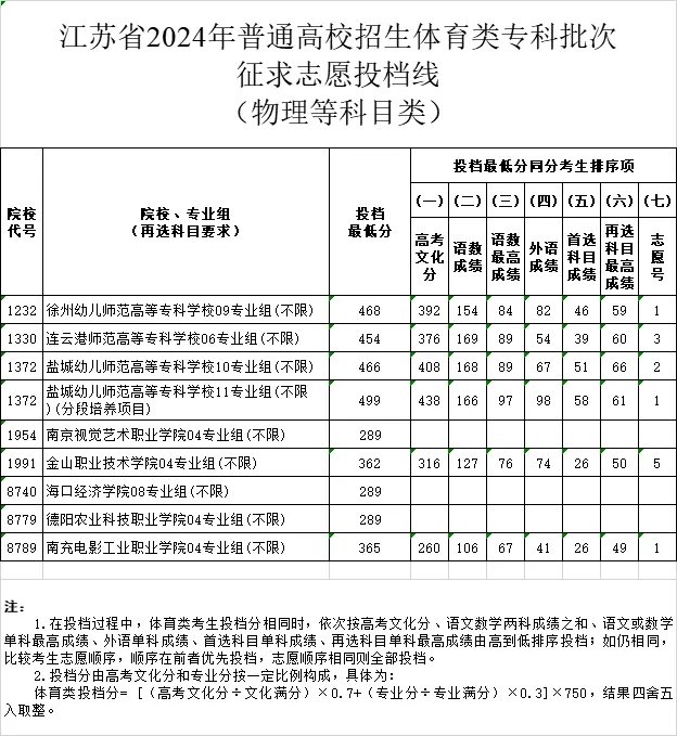 2024年江苏省苏州市普通高校招生体育类、艺术类专科批次征求志愿投档线