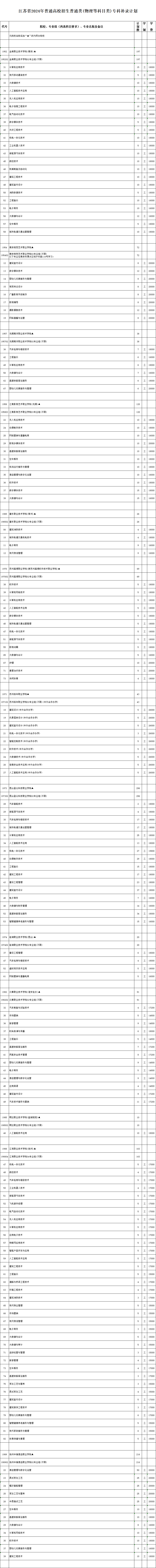 江苏省苏州市2024年普通高校招生普通类(历史、物理等科目类)专科补录计划