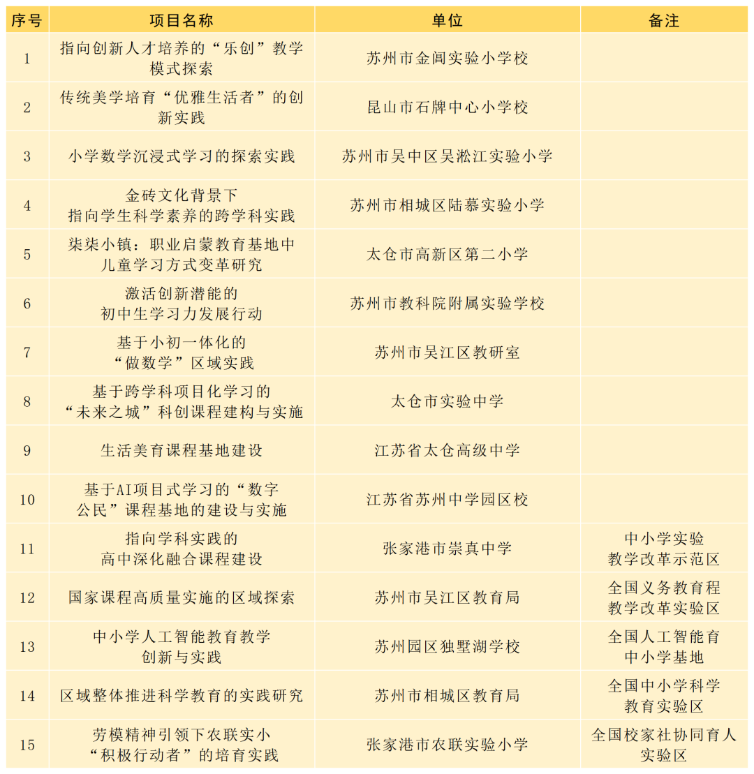 2024年江苏省基础教育内涵建设项目名单!苏州有这些项目!