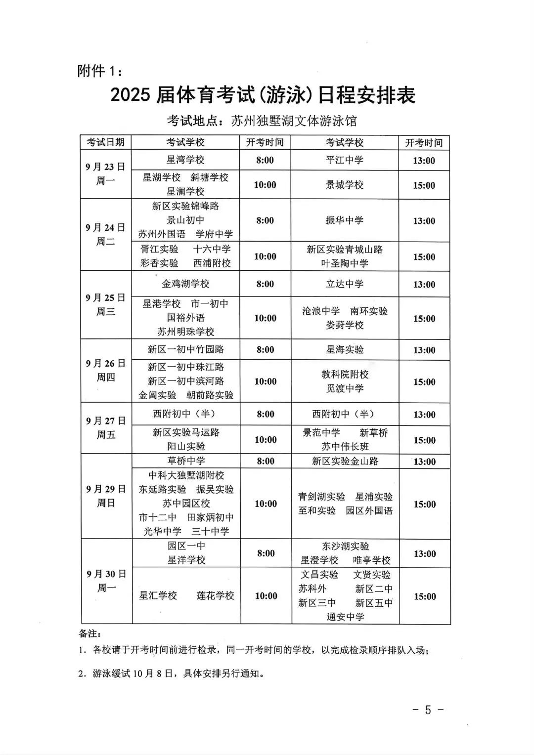 2025届体育考试(游泳)日程安排表出炉