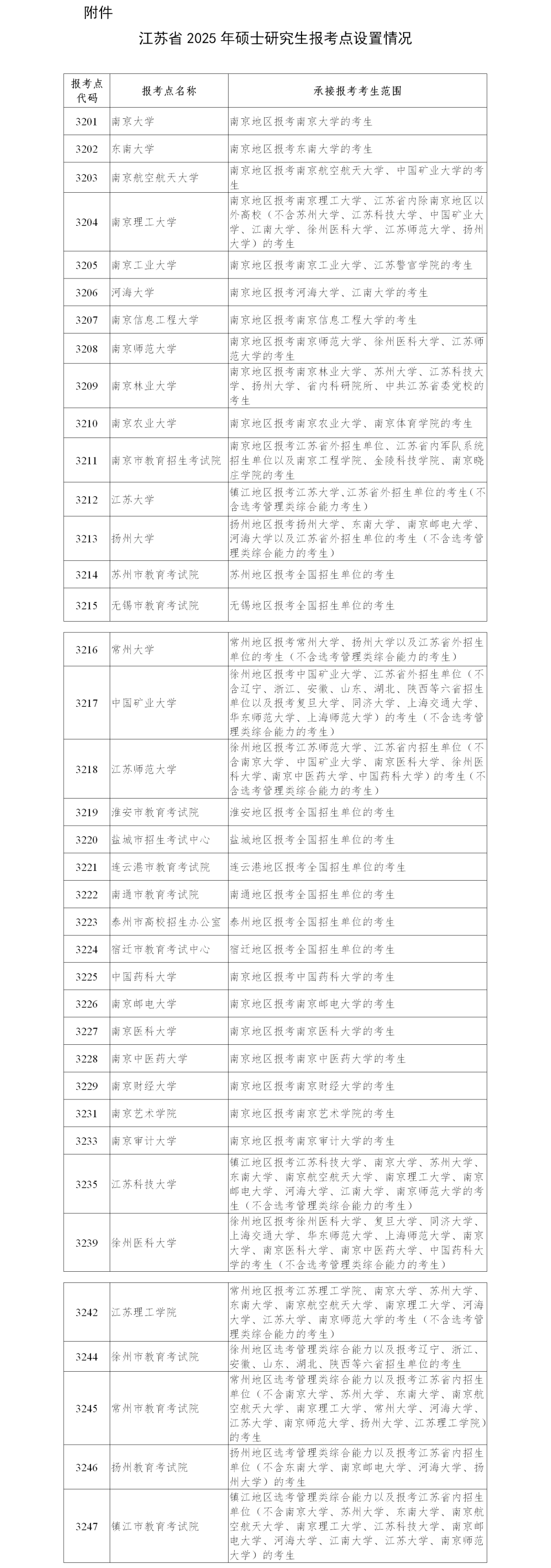 江苏省2025年硕士研究生报考点设置情况详见文末附件。