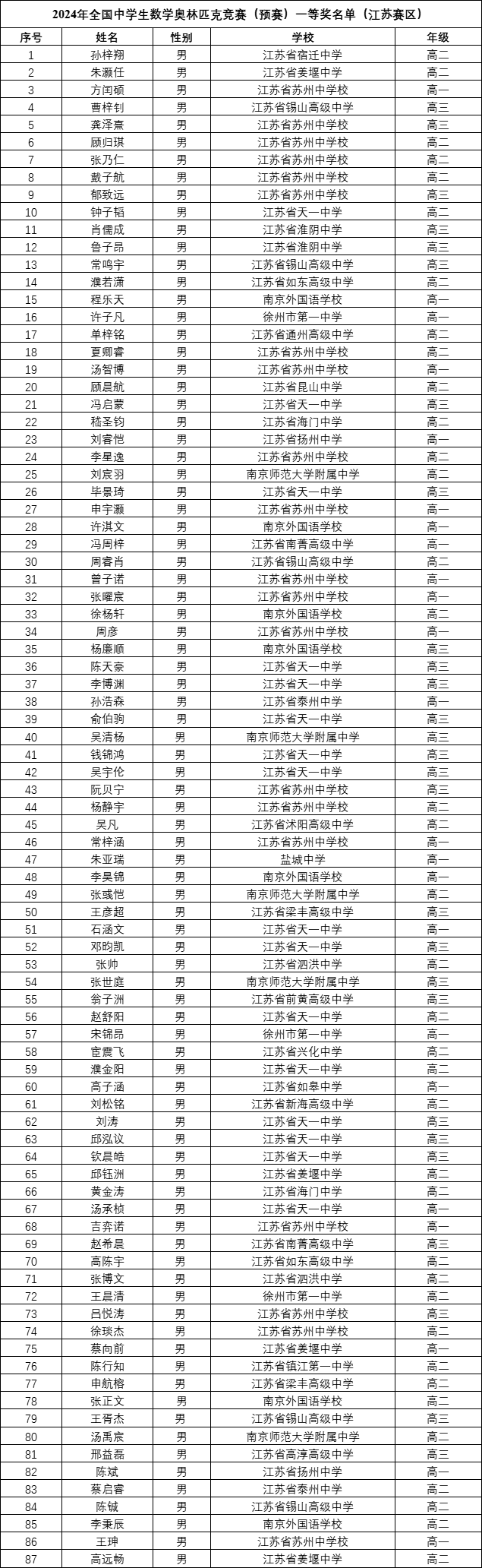 江苏共87人获得省一,27人进省队!一起来看看苏城学子表现如何吧~