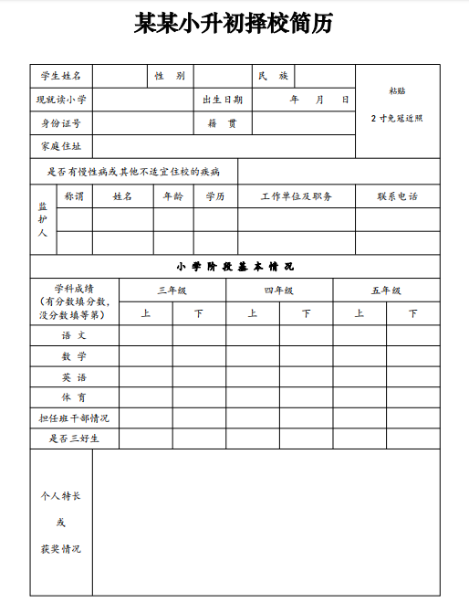 小升初择校简历必备模块