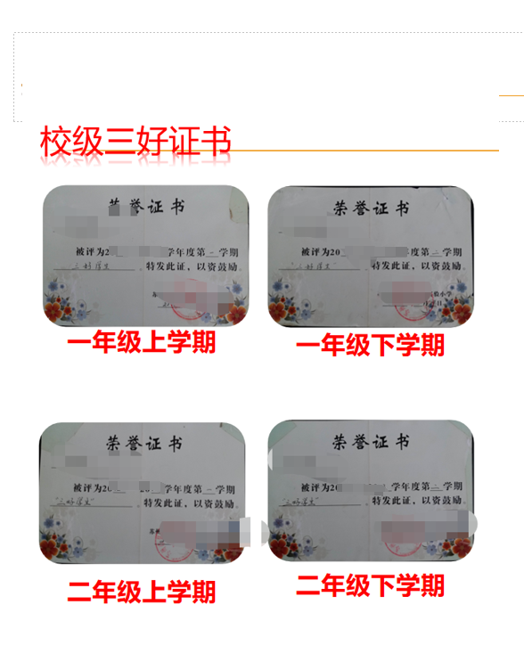 素质报告书复印件、三好证书等其他各类证书复印件。