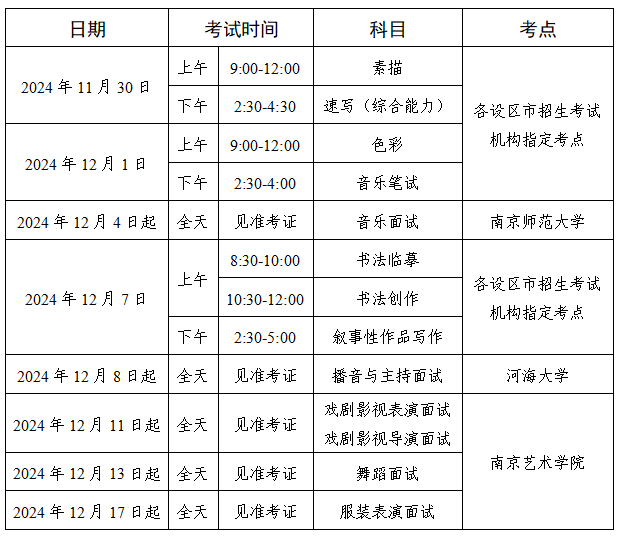 江苏省苏州市2025年普通高校招生艺术类专业省统考时间及考点安排