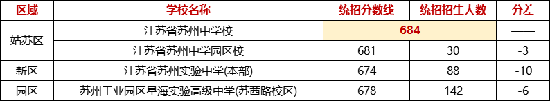 结合统招招生人数与分差,市三区考入苏州中学的概率:园区>姑苏区>新区。粗略估计,仅参考。