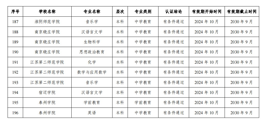 2024年通过普通高等学校师范类专业认证的专业名单(江苏高校)
