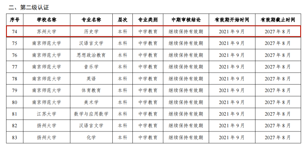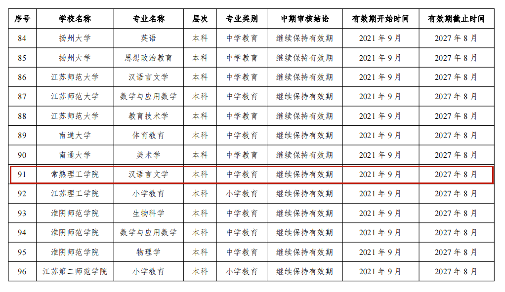 2024年通过普通高等学校师范类专业认证中期审核的专业名单(江苏高校)