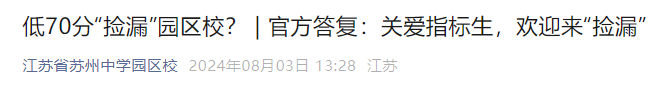 网传今年中考某同学611分,通过指标生报考苏州中学园区校,成功“捡漏”,低70分录取。