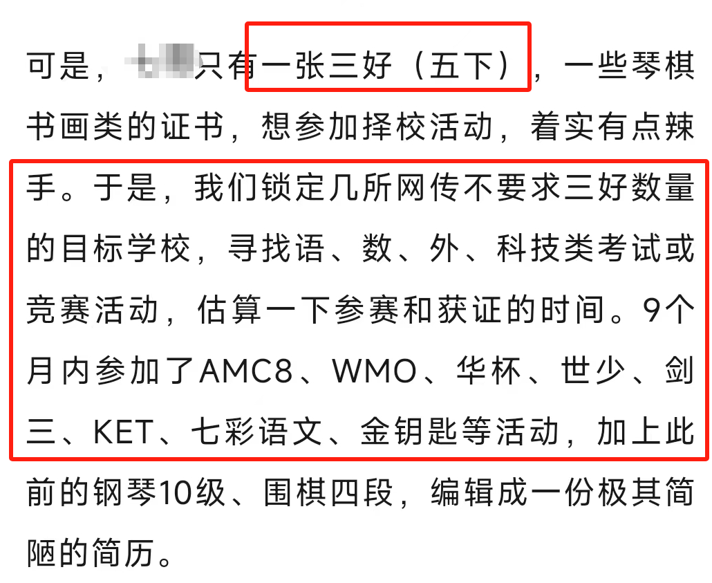 此前就有报考伟长的家长,自家娃全优全三好,有区三好,没有参加过任何比赛,伟长简历没通过。