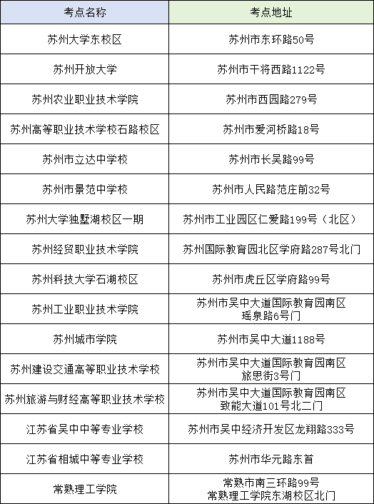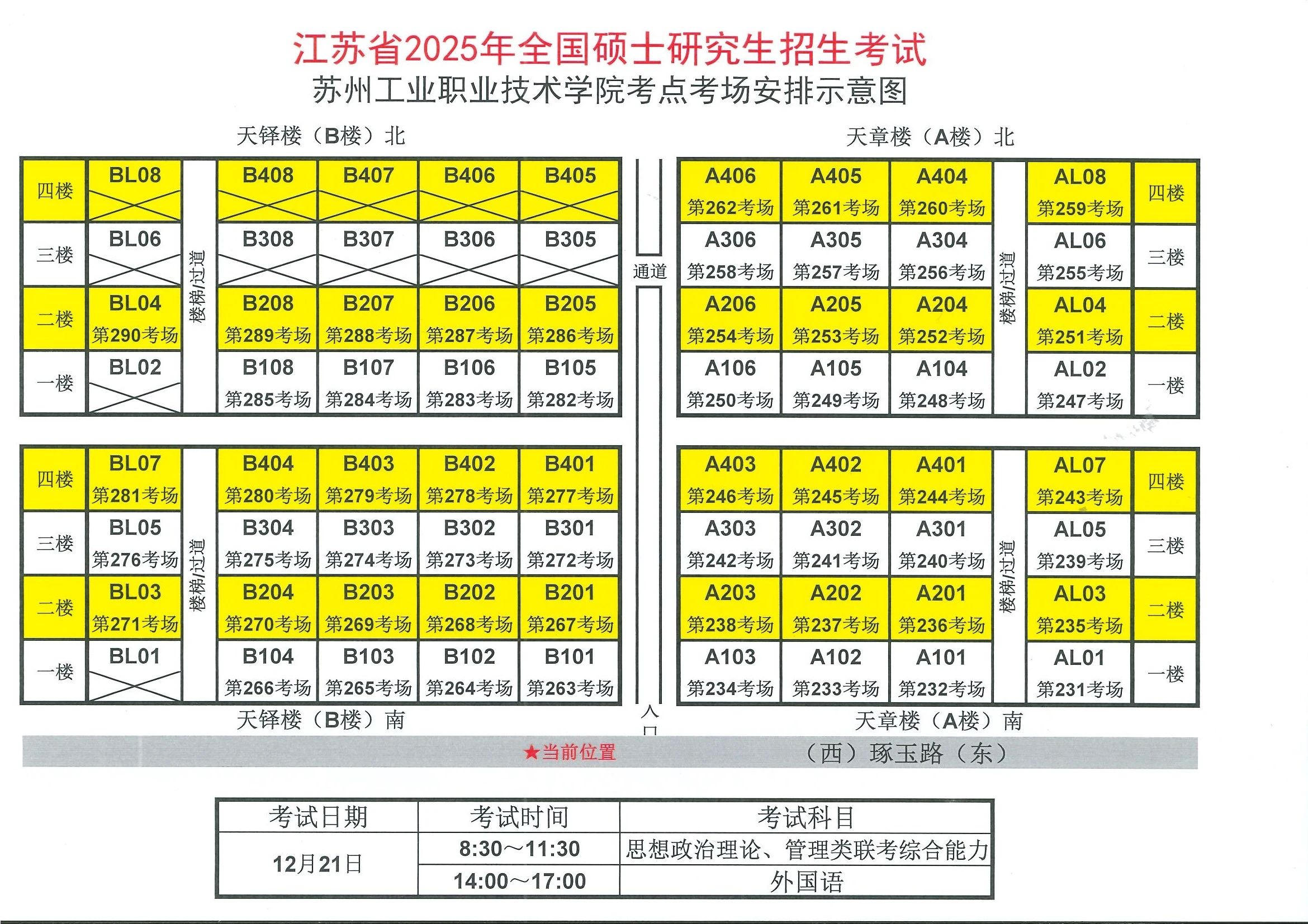 2025年全国硕士研究生招生考试将于12月21日至22日举行,苏州市共设有16个考点分别为