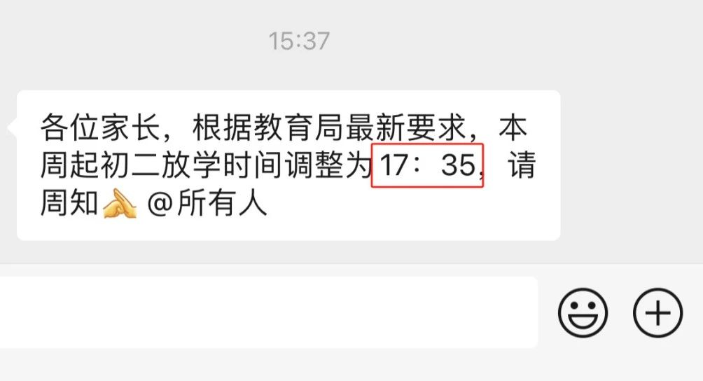 据家长反馈,东延路初二年级放学时间提前了1个小时,现调整到17:30放学。