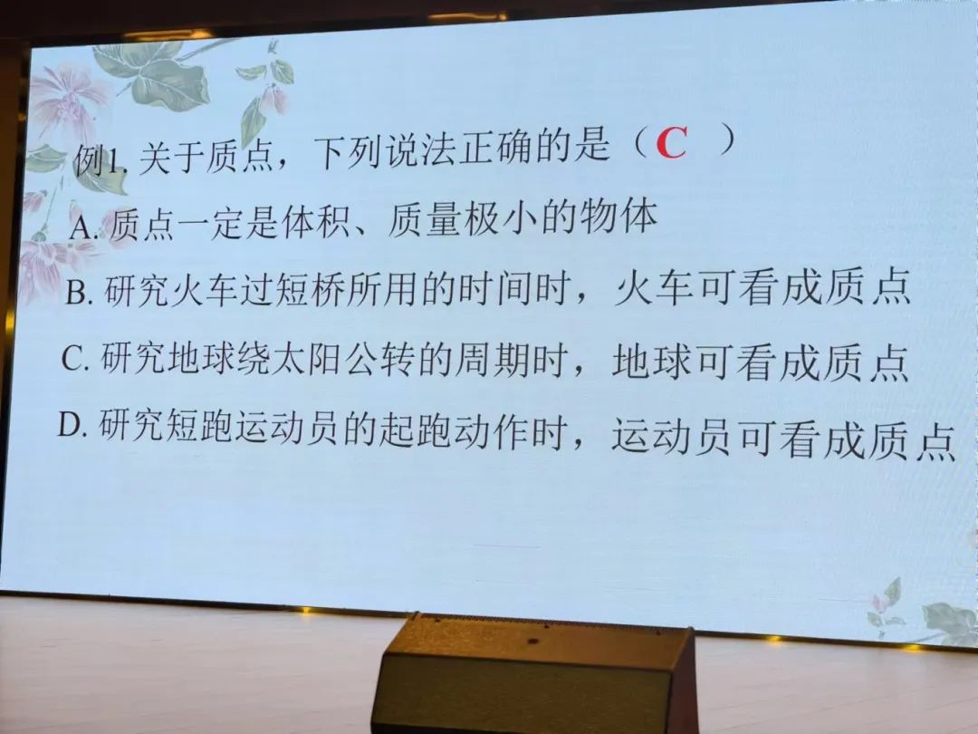 物理讲了30分钟,主要讲了质点、参考系、时刻和时间间隔、位移和路程、速度这五个知识点,都是讲了定义并且有1道例题。