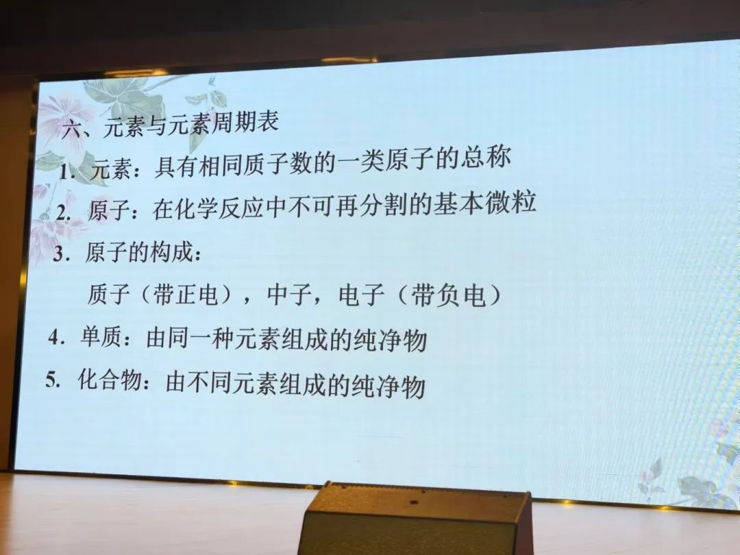 化学讲了15分钟,重点讲了元素与元素周期表。