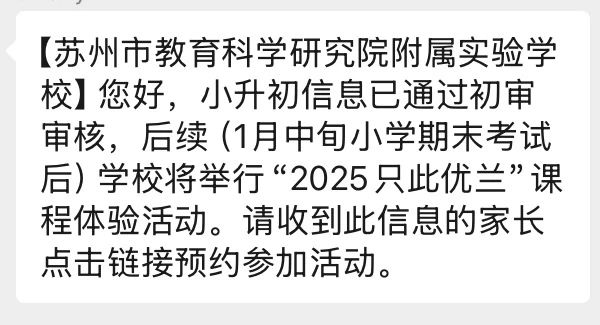 苏州市教科院附属实验学校2025年小升初初审结果出炉!之前报名的家长注意看短信哟~