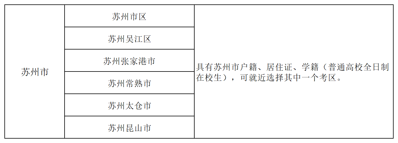 具有苏州户籍、居住证、学籍(普通高校全日制在校生),可就近选择一个考区进行报考。