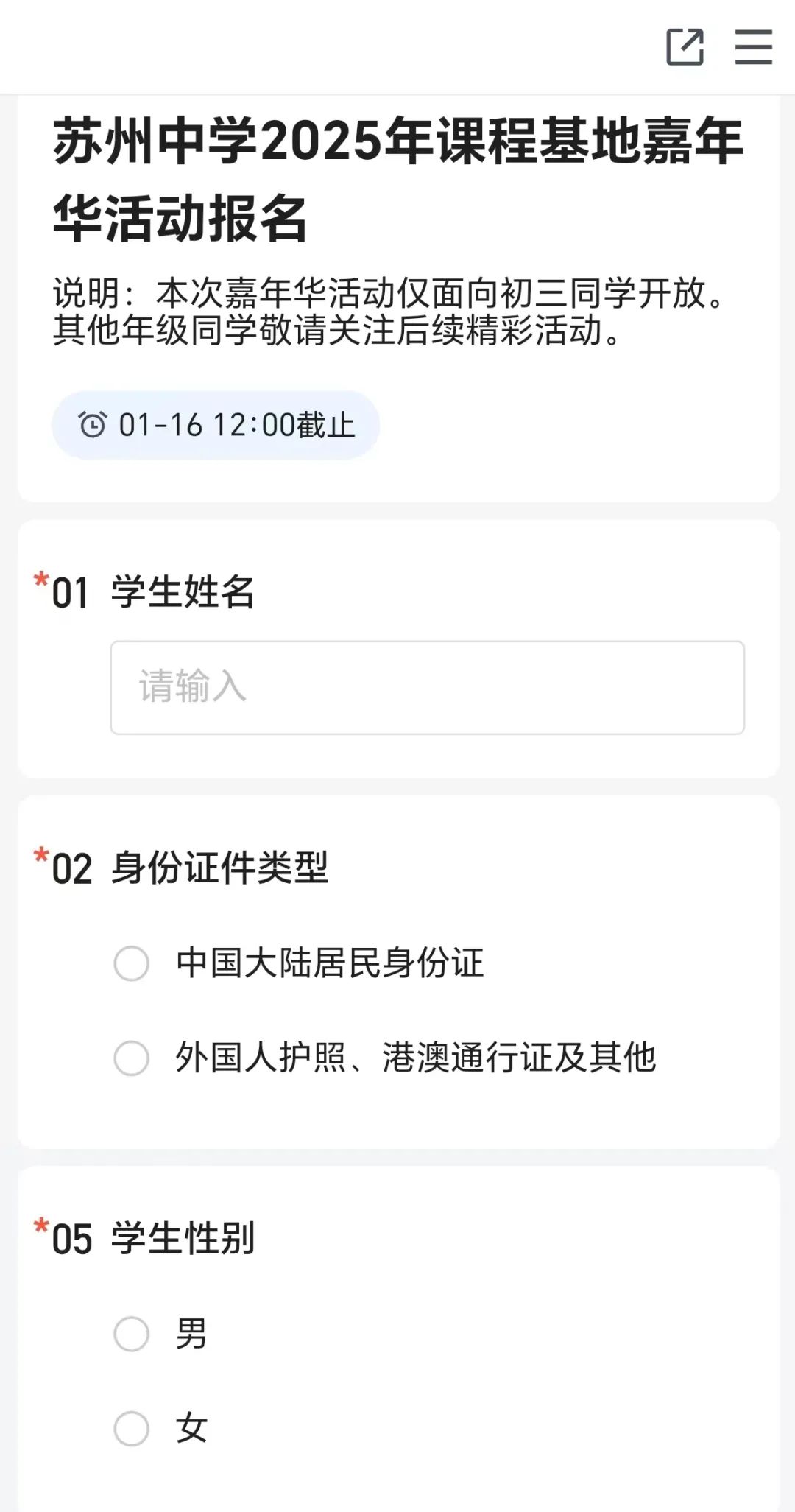 2025江苏苏州中学课程基地冬季嘉年华活动报名启动!面向初三学生!