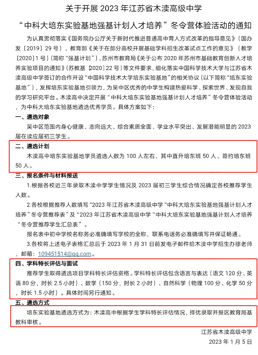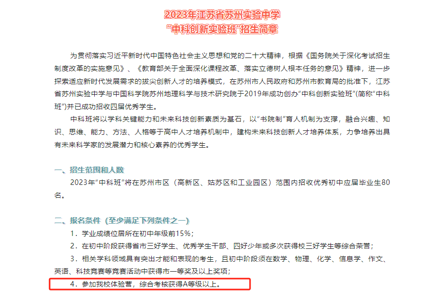 去年年前,针对相城区内的学生,相城中学组织了一次冬令营选拔,通过的孩子在年前已经和相城中学签约了“相城苏高项目”。