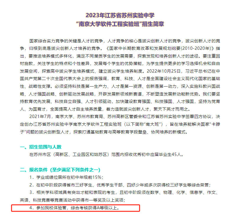 3.吴江、吴中的冬令营是锁定本区域的好学生,组成“初高衔接班”或者“创新实验班”等,初三下学期就要到被录取的学校上高中课程了,中考分数只要过了最基本的资格线即可。