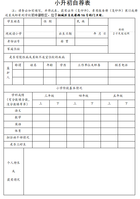 注意:线上登记完成提交后,需要根据学校要求将小升初自荐表、获奖证书(复印件)、素质报告册(复印件)装订成册送至或邮寄到学校初中部校区(相城区青龙港路16号的门卫处)。之前已经送过简历的家长,一定要线上登记,以及根据学校要求再次将纸质简历送至学校门卫处!