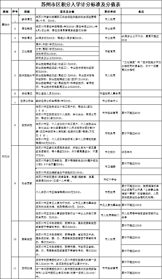 苏州市教育局负责《苏州市区义务教育阶段流动人口随迁子女积分入学管理办法》(以下简称《积分入学管理办法》)政策制定、工作指导和统筹协调,并组织实施市区(含直属)义务教育阶段公办学校的积分入学管理工作。