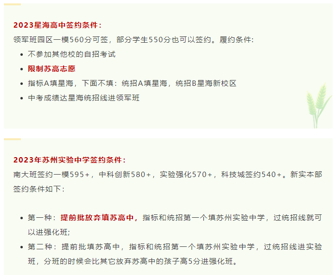 也就是说,想要签约生效,必须按照学校的要求来填写志愿。往年星海和新实甚至会要求提前批不能填苏高中(也就是想履约必须放弃苏高中志愿,今年是否有这一要求未知)