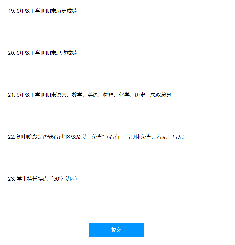 表单中需要详细填写9上期末考试成绩以及学生初中阶段所获荣誉、证书等信息。目标星海的家长可不能错过此次登记,星海下次有活动,才能通知到你!